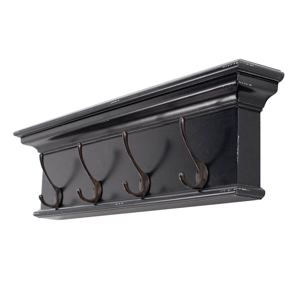 Bring a touch of unique style to your home with this wall-mounted coat rack. Showcase your decorative items on the shelf and hang your coats, keys, and handbags on the four large, antique brass hooks. It's the perfect way to declutter your entryway and make a bold statement!