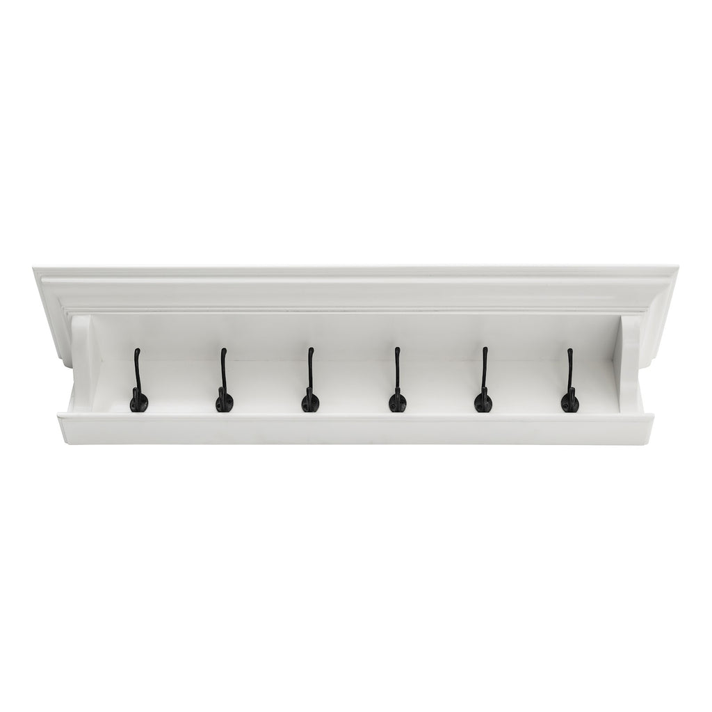 Bring a touch of unique style to your home with this wall-mounted coat rack. Showcase your decorative items on the shelf and hang your coats, keys, and handbags on the six large, antique brass hooks. It's the perfect way to declutter your entryway and make a bold statement!