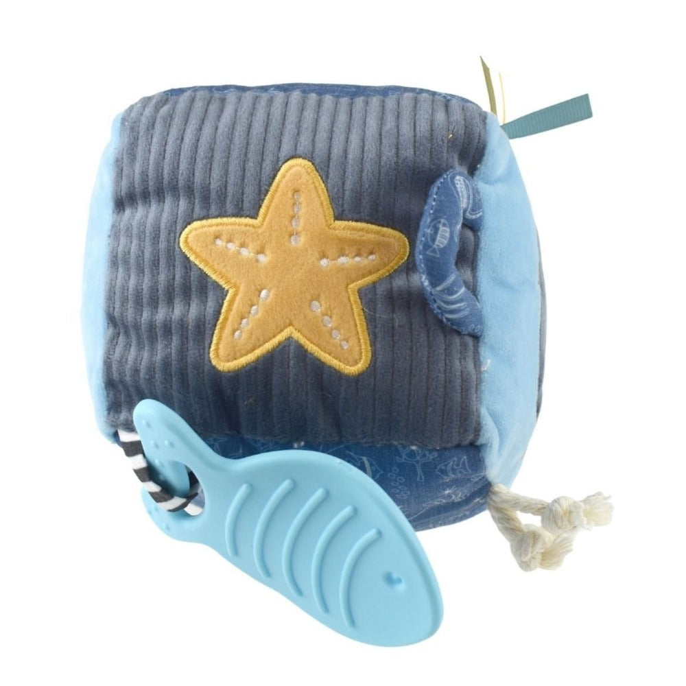 Explore and discover with the Whale Snuggle Soft Sensation Cube. This soft, cute sensory cube offers a playful journey of sensory discovery for babies. With different activities on each side, it encompasses vibrant colors, captivating sounds, and tactile sensations.