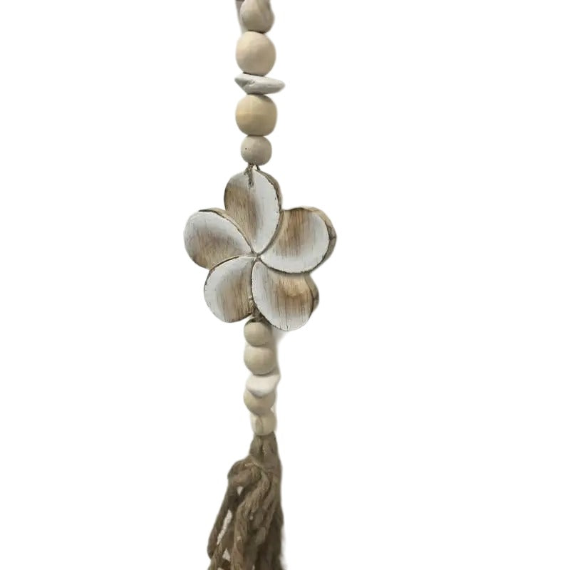 Decorate your home with our beautiful White Flowers with Beads Tassel Mobile. Measuring 9x2x90cms, it adds a touch of elegance and charm to any room. The white flowers and beads create a serene and delicate look that is sure to capture attention. Enhance your space with this lovely decorative piece.