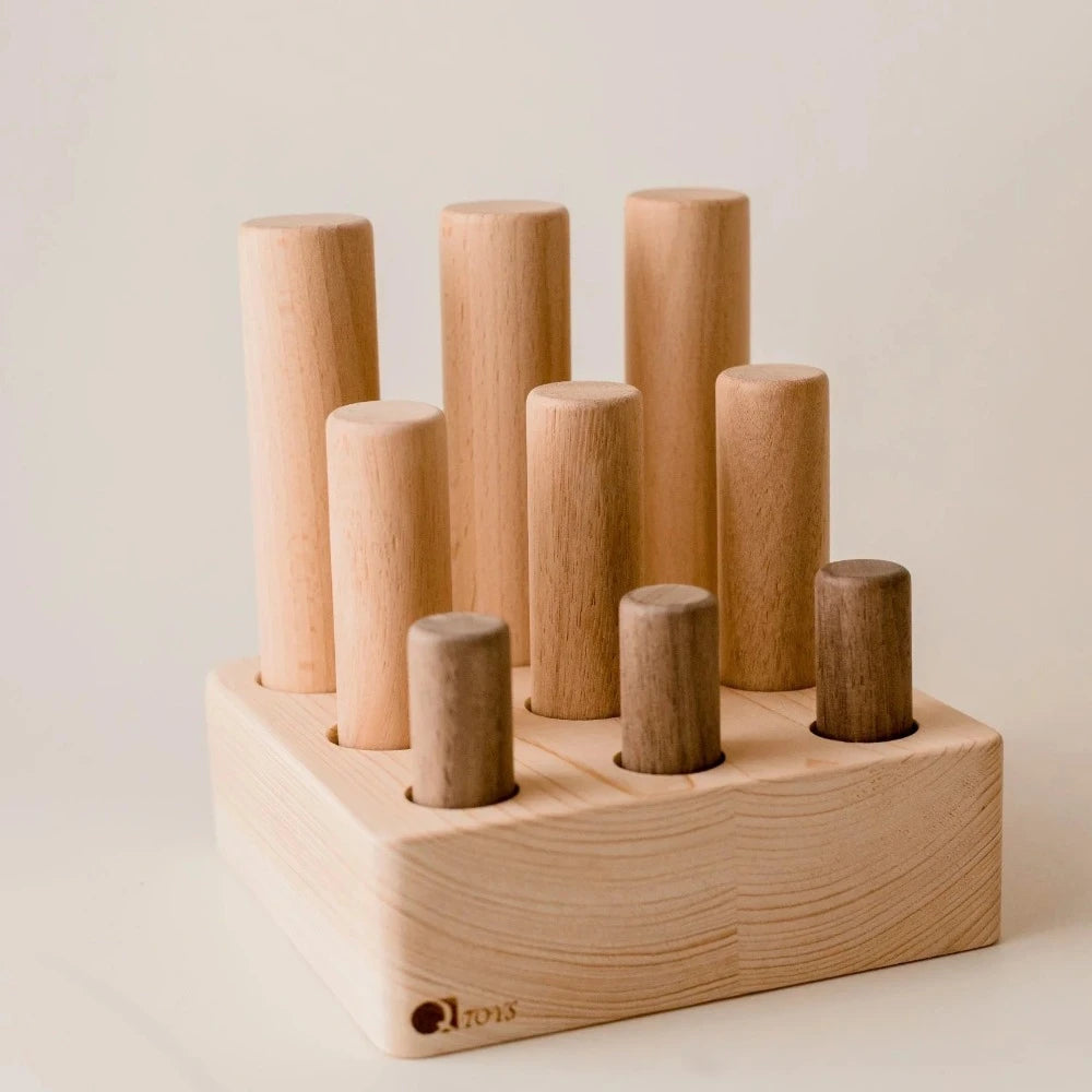 This wooden 9 pole activity puzzle is perfect for developing fine motor skills and hand-eye coordination in toddlers. Made with high-quality materials for durability, it offers an educational and engaging learning experience for young children. Each puzzle piece is designed to fit perfectly onto the poles, providing a satisfying challenge for little ones.
