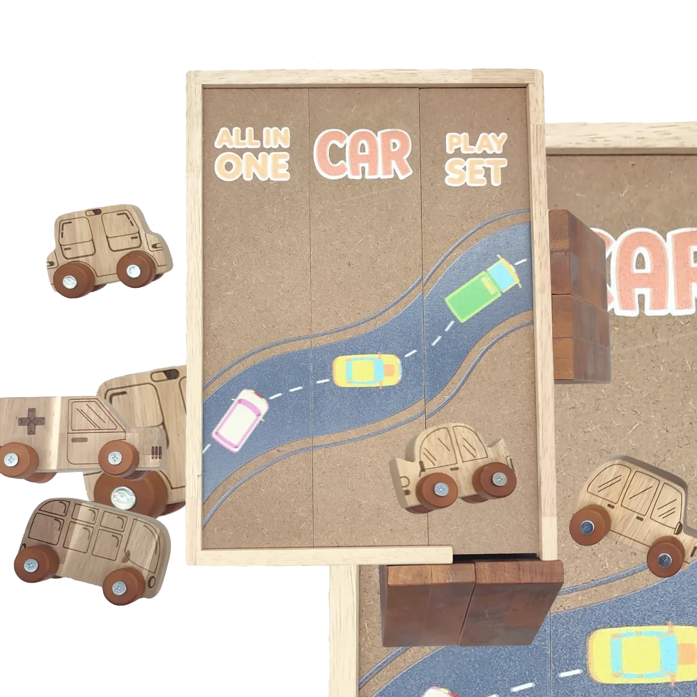 This Wooden All in One Car Play Set is expertly crafted and provides endless hours of imaginative play. Made from high-quality wood, it features a variety of track pieces, trains, and accessories for a complete play experience. Cultivate your child's creativity, motor skills, and problem-solving abilities with this versatile set.