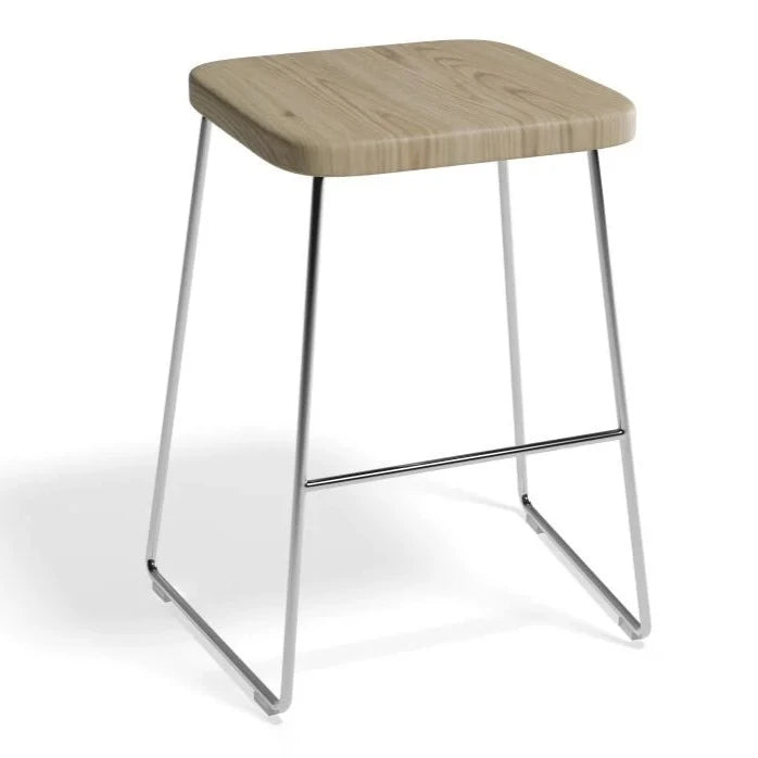 Enhance any commercial space with our Wooden Square Seat Chrome Base Low Stool. Crafted with a solid American Ash seat, this stool adds natural beauty while creating a warm atmosphere. With a convenient size easy assembly, and stylish design, this timeless stool is perfect for a variety of settings.