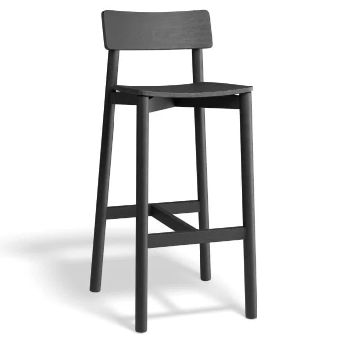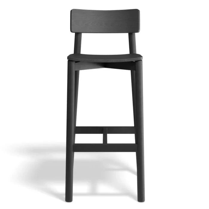 Introducing the Woodland Black Rylie Stool, available in two sizes. Made with sleek black stained American Ash for durability and easy cleaning. The 66cm or 75cm seat height is perfect for counters, bars, or high tables. Plus, no assembly required, making it convenient for commercial spaces.