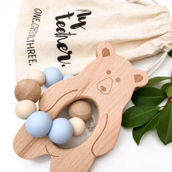 You'll also receive a bonus 'My Teether' calico pouch to keep your teether safe between uses and ready for the next chomp session. They're designed to be the perfect compliment to your boutique teether - whether you're buying for your own bebe or as a gift, our packaging won't go unnoticed!
