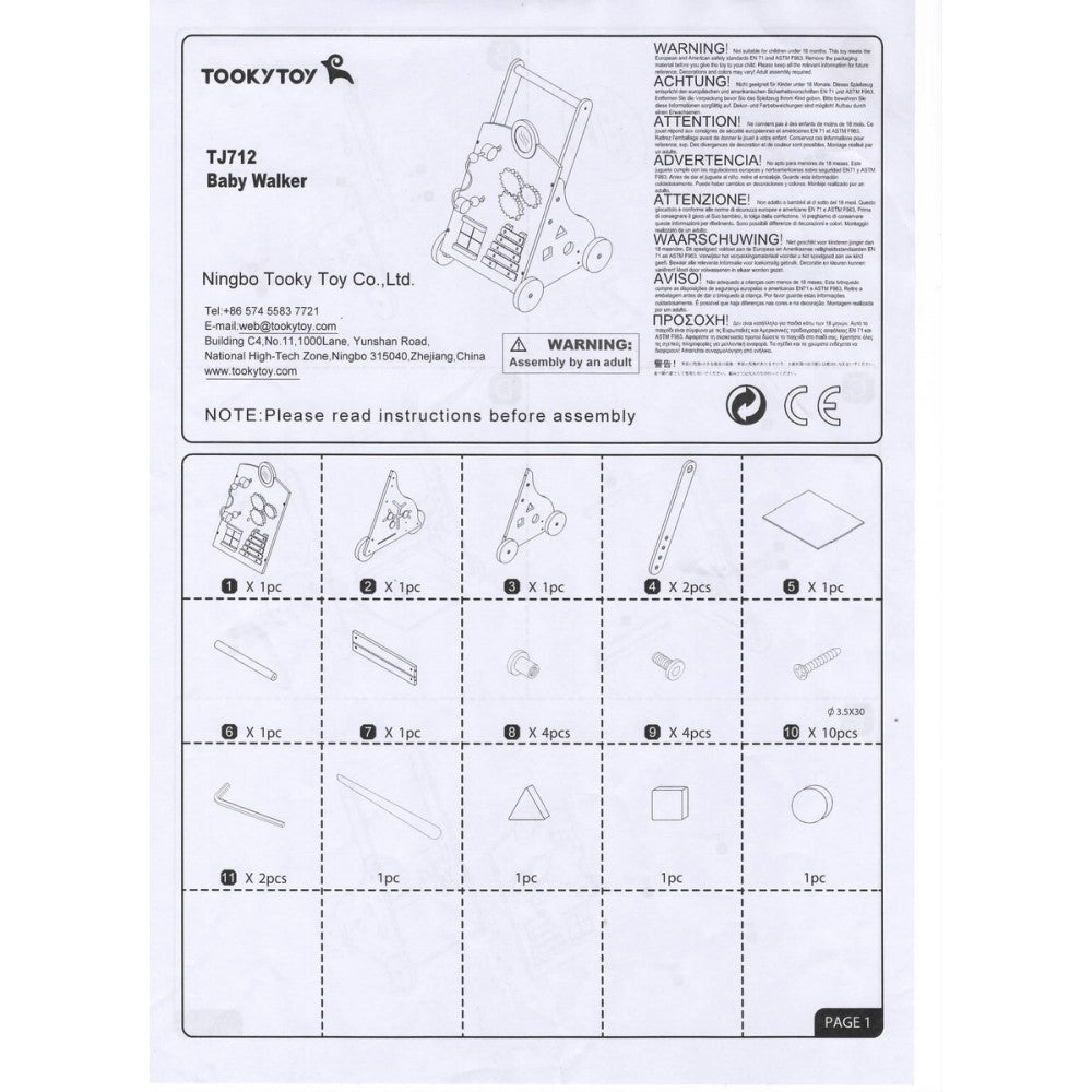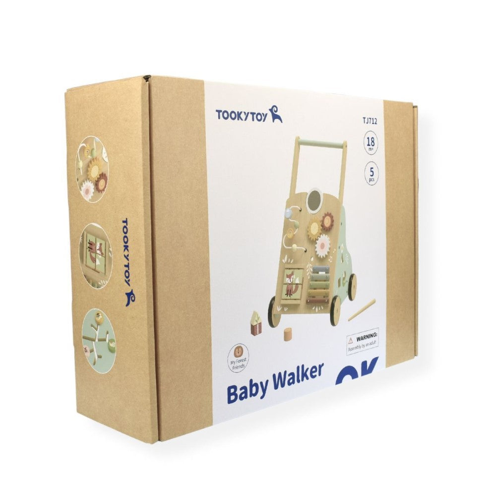 This push walker, adorned with friendly woodland creatures, makes learning to walk a joyful adventure. Sturdy wooden construction and rubber-trimmed wheels provide stability, while the activity center on the handle provides hands-on learning. Boost physical and cognitive development with this engaging and durable push walker.