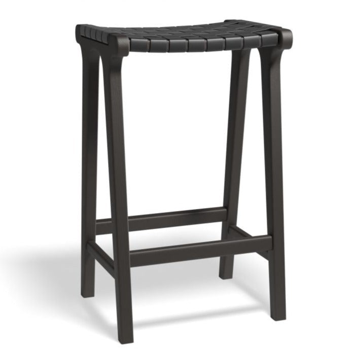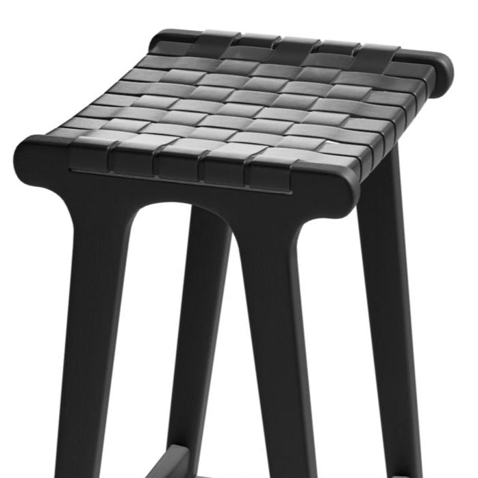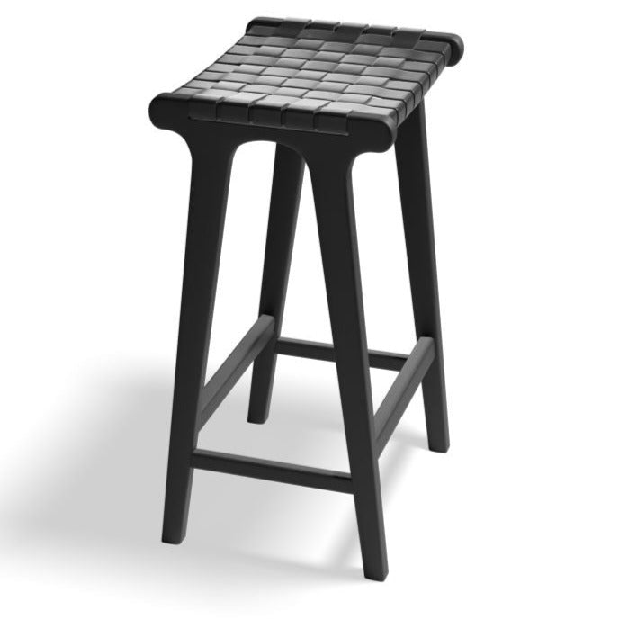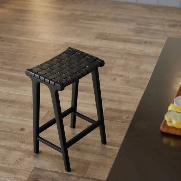 As an expert in commercial furniture, I highly recommend the Woven Comfort Black Frame Stool. This sturdy stool features an upholstered black faux leather seat for utmost comfort. Its unique woven design adds an eye-catching touch to any space, while requiring no assembly.