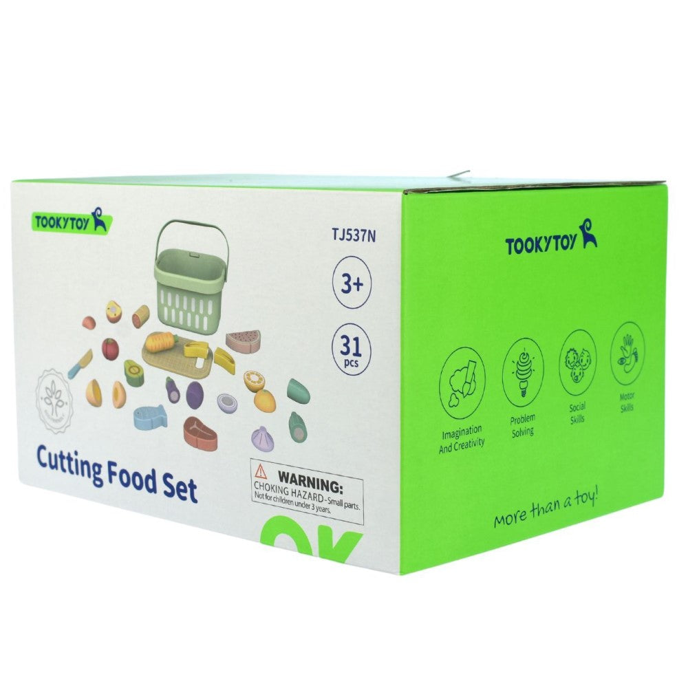Expand your child's culinary skills with the Young Cutting Master Play Set. Featuring 14 realistic wooden foods, a knife, and cutting boards, this set inspires imaginative play and helps develop fine motor skills. Conveniently store the set in the included shopping basket.